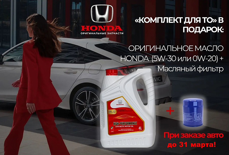 Комплект «Оригинальное масло Honda 4L + масляный фильтр Honda» в подарок!» — для всех, кто оформит автомобиль под заказ до 31 марта 2026г.